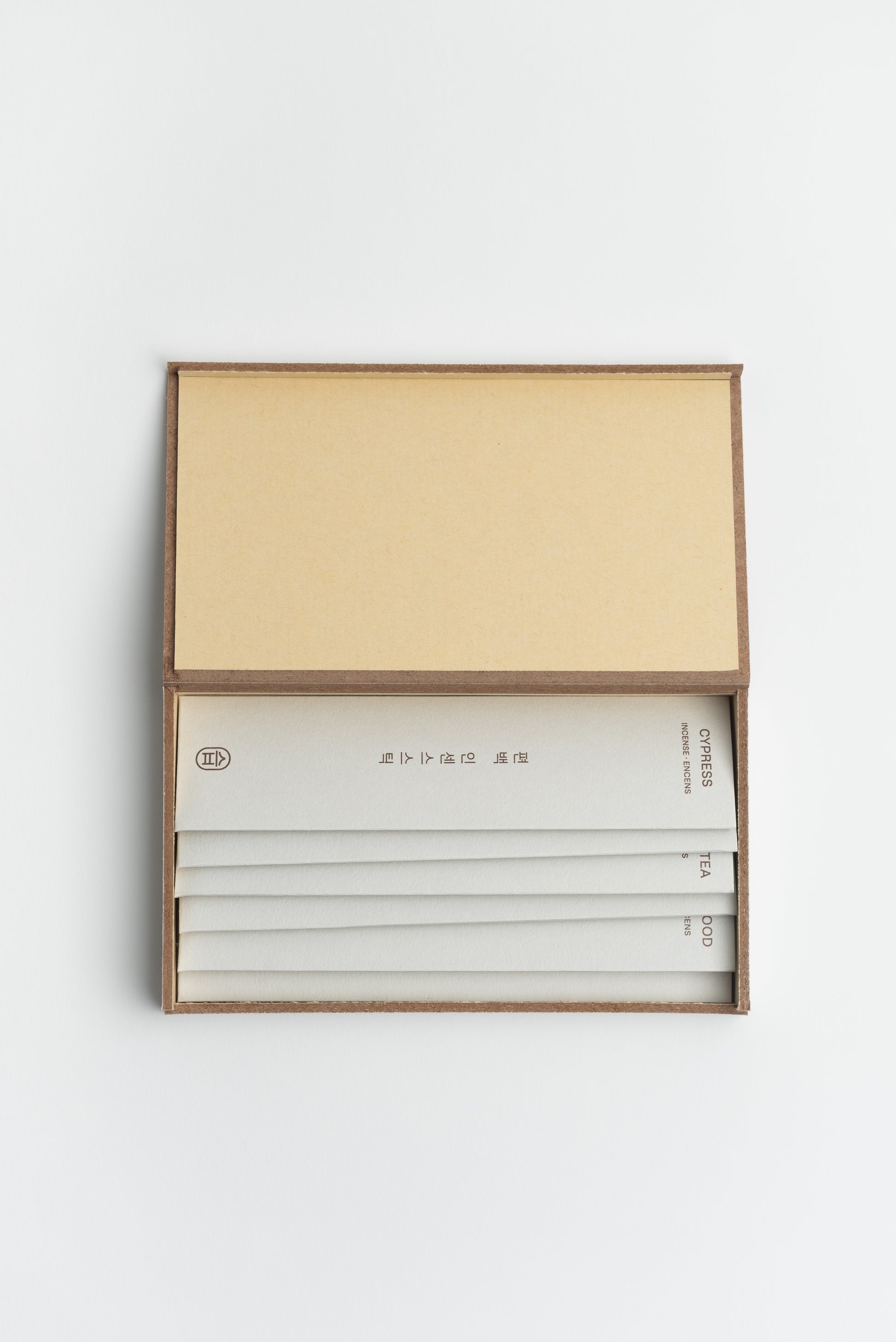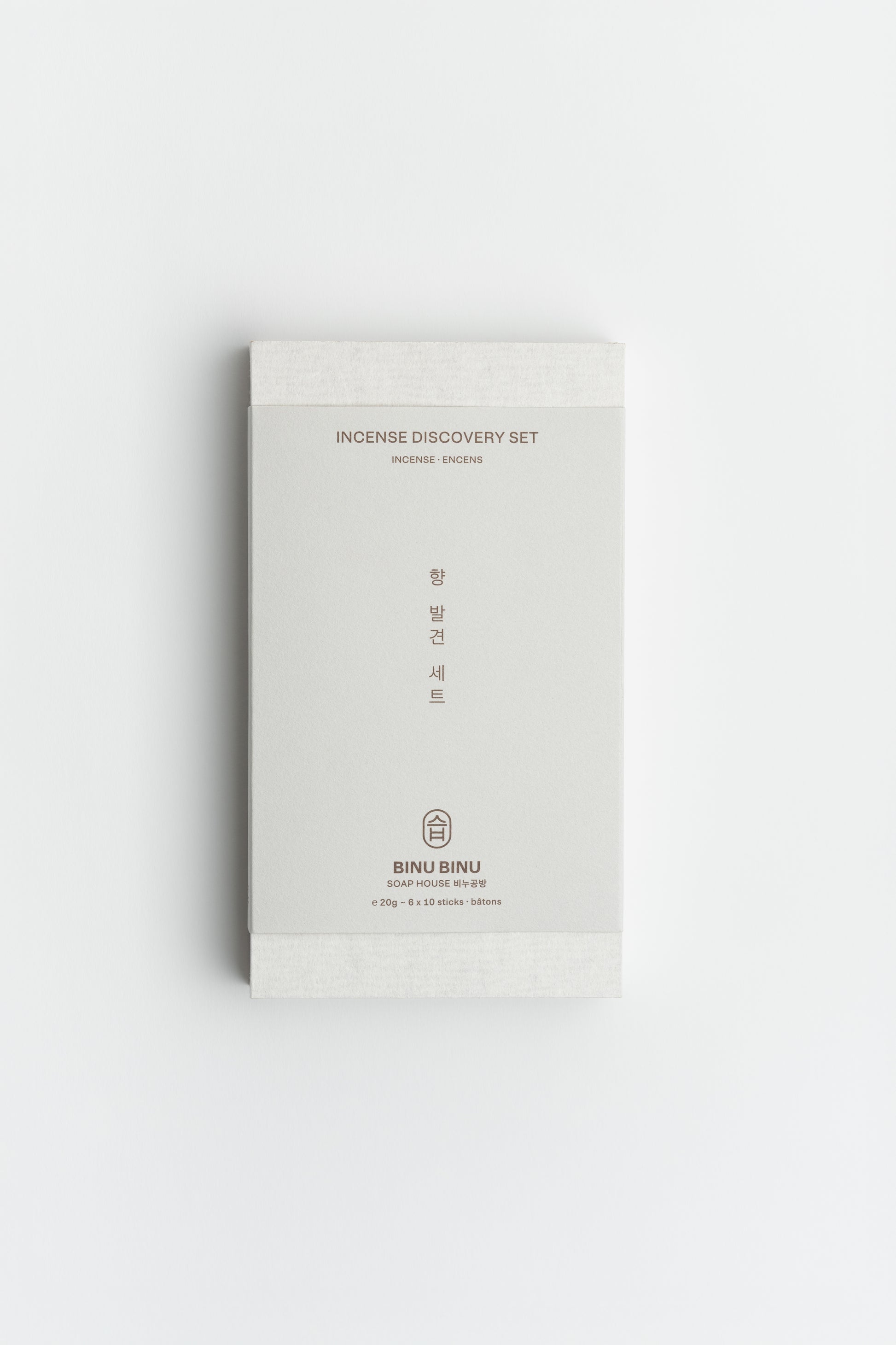 Chaque coffret contient 10 bâtons de chaque parfum, soigneusement emballés dans une boîte en bois élégante, recouverte de papier texturé hanji, rappelant l’artisanat coréen.